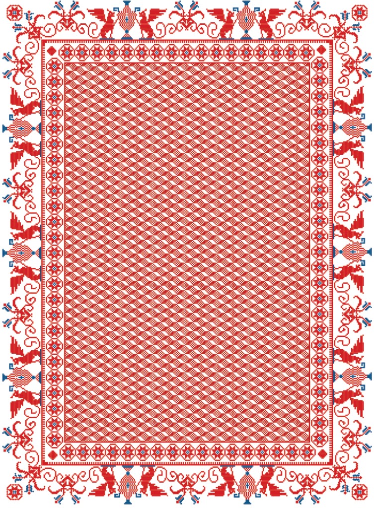 I'm incredibly drawn to textiles as well as vintage things, folksy things, and foreign things. What better inspiration then than traditional Russian embroidery? Their patterning is breathtakingly detailed and gorgeous. I took various cross-stitch patterns, mixed and matched, and made them into vector patterns: Each cross stitch of the original pattern (which is so conveniently a square) is represented by a single, computer vector square. Every single one. Once I got the hang of it, it just became a lot of double-checking and aligning, and it wasn't too difficult.